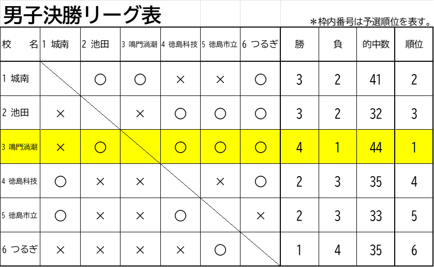 予選的中数順により組み合わせを決定し、トーナメント方式で行う。