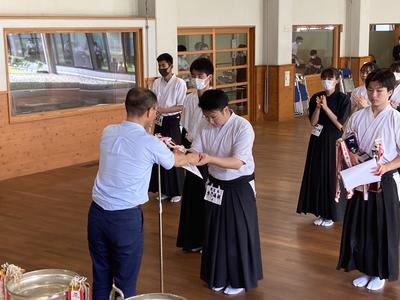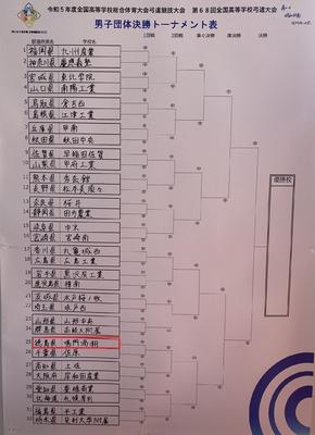 ●決 勝:トーナメント方式により、各自4射、1団体計20射を行い、的中数により勝敗を決定する。